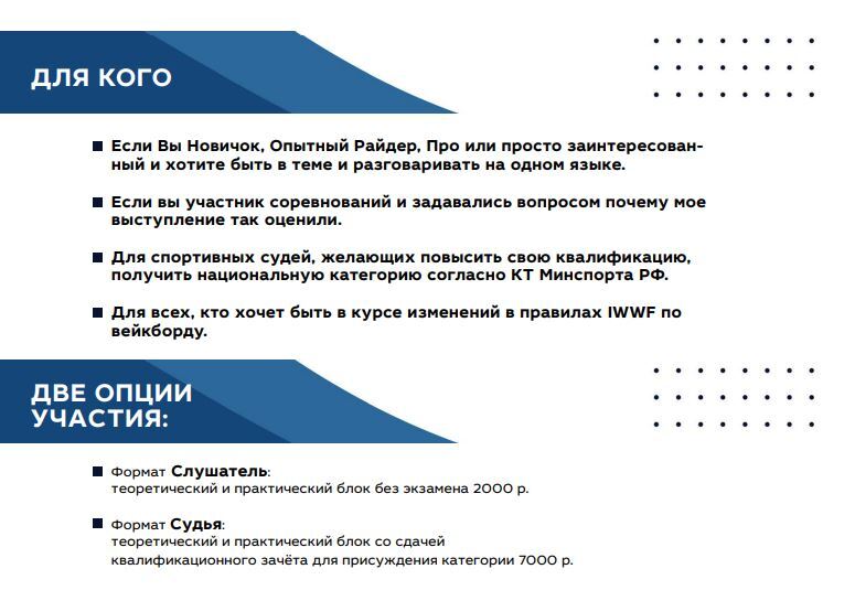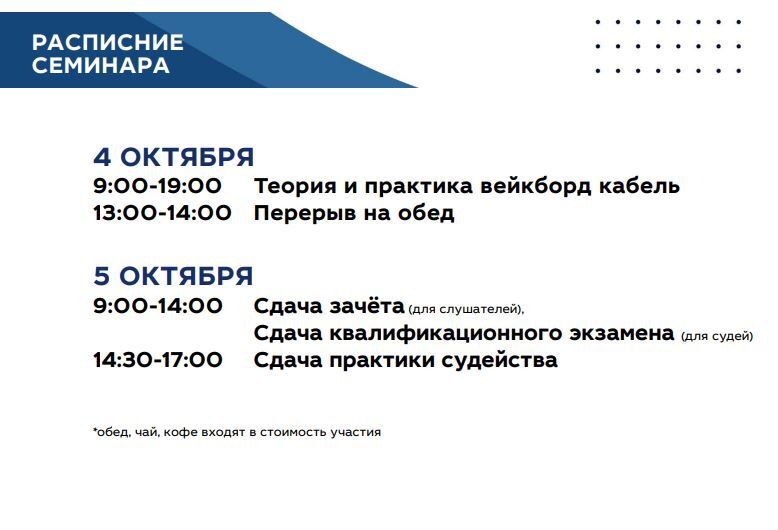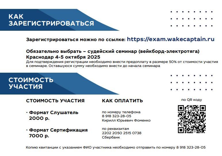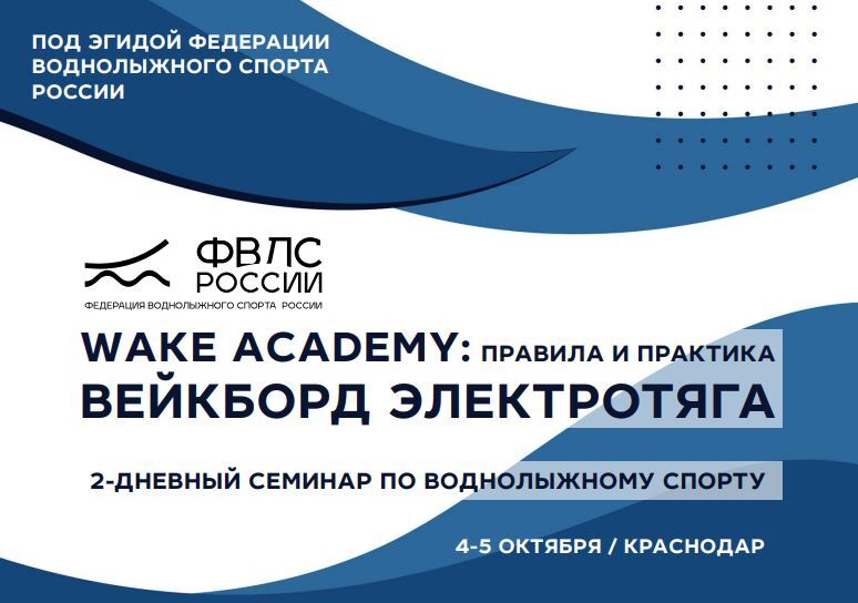 4 и 5 октября в Краснодаре пройдёт важное событие для нашего сообщества — семинар "WAKE ACADEMY: правила и практика вейкборд-электротяга". Мероприятие состоится под эгидой Федерации воднолыжного спорта России.